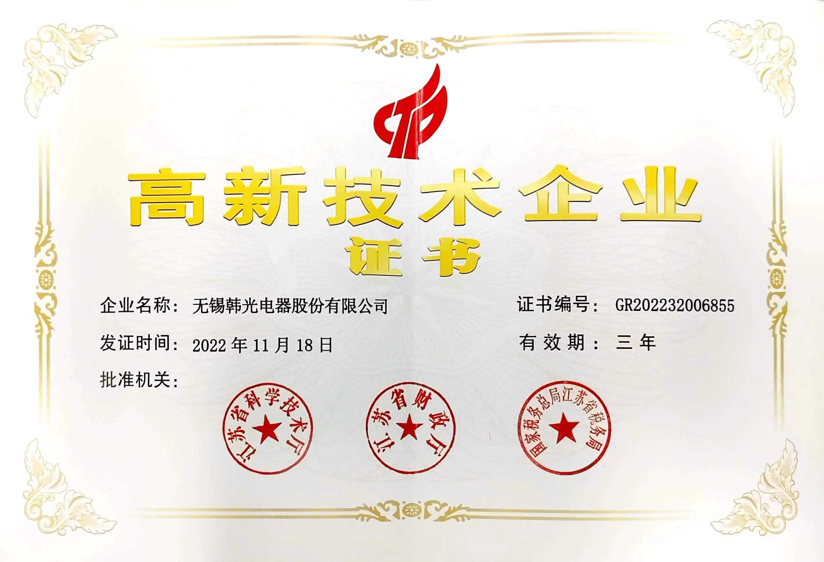 通過省高新技術(shù)企業(yè)認證;